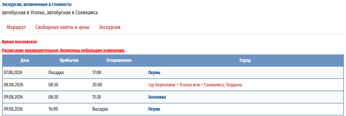 - − Пермь – Березники + Усолье - Соликамск - Пермь с 07 августа 2026 по 09 августа 2026 — 3 дней *