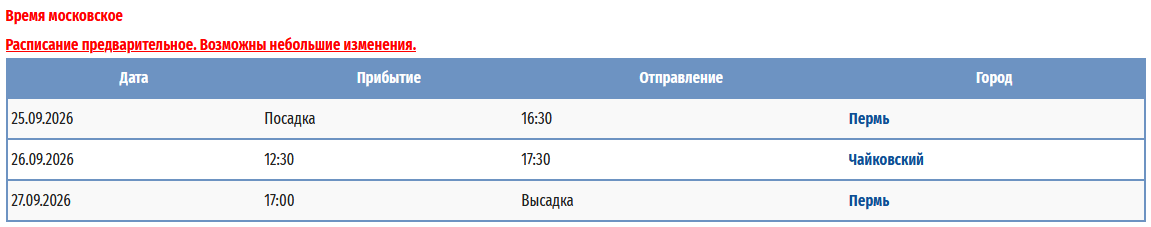 - − Пермь – Чайковский – Пермь с 25 сентября 2026 по 27 сентября 2026 — 3 дней