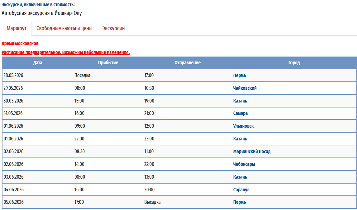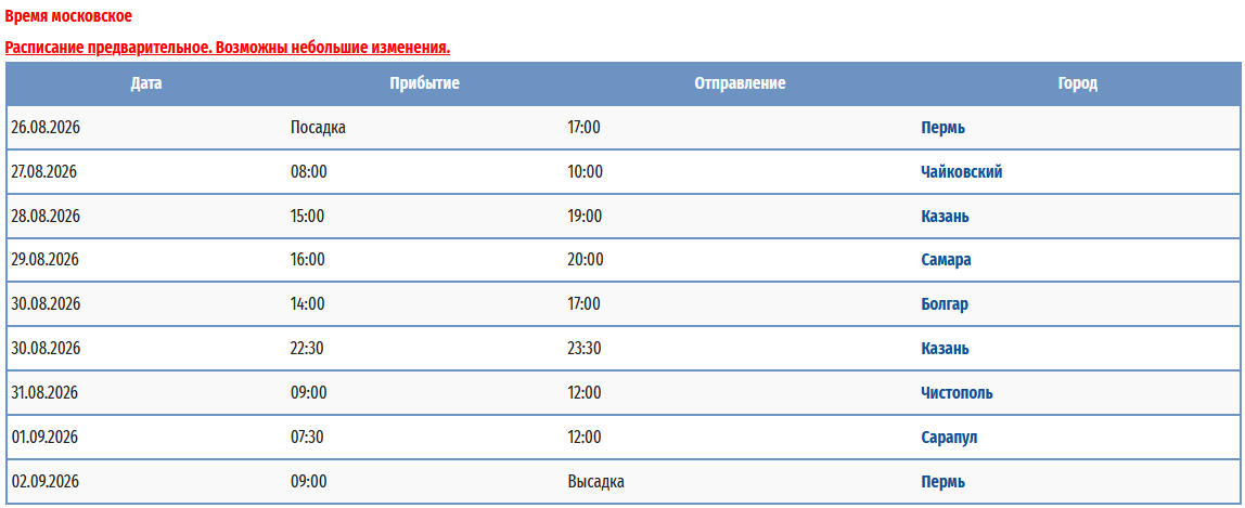 - − Пермь – Казань - Самара – Пермь с 26 августа 2026 по 02 сентября 2026 — 8 дней