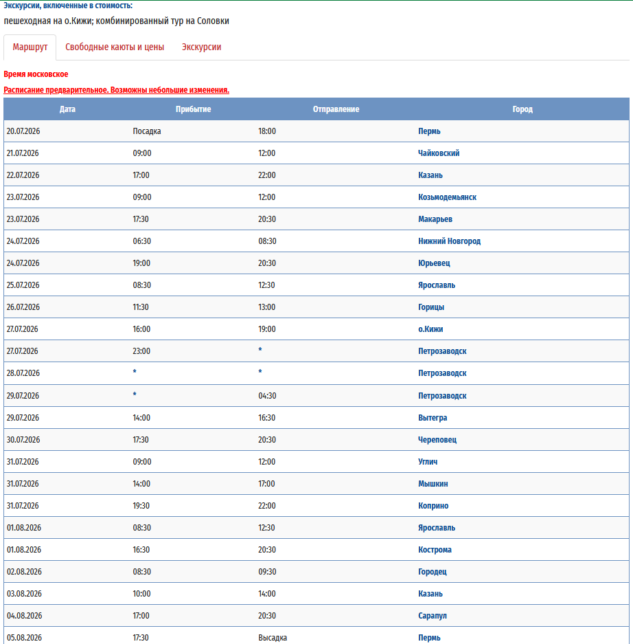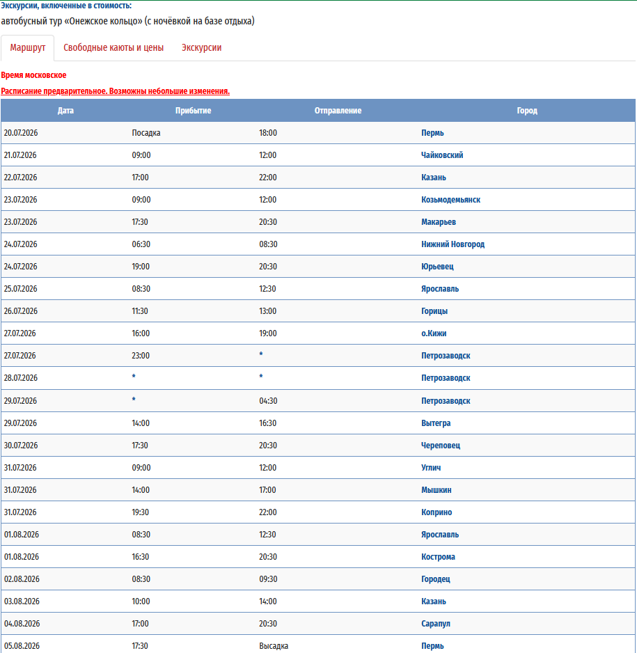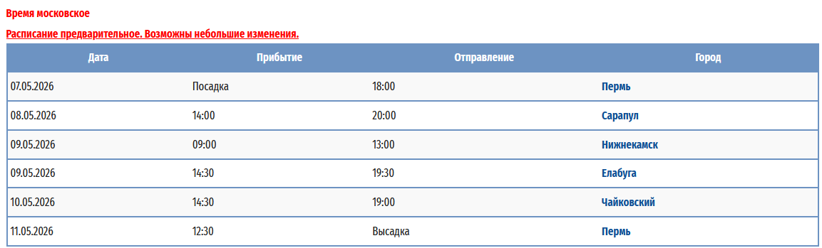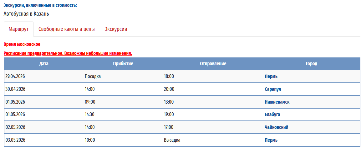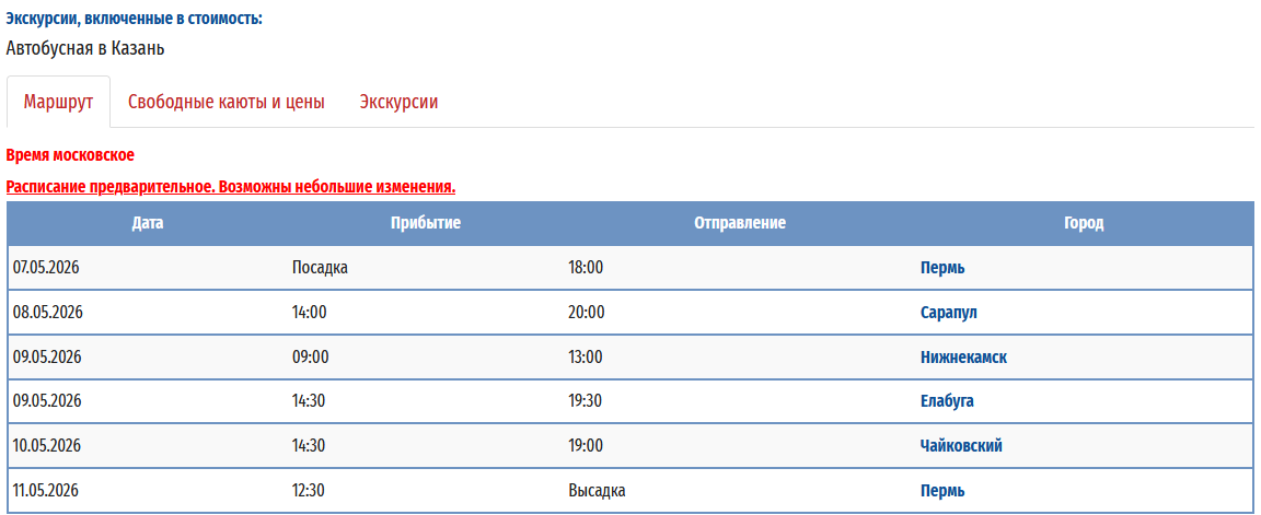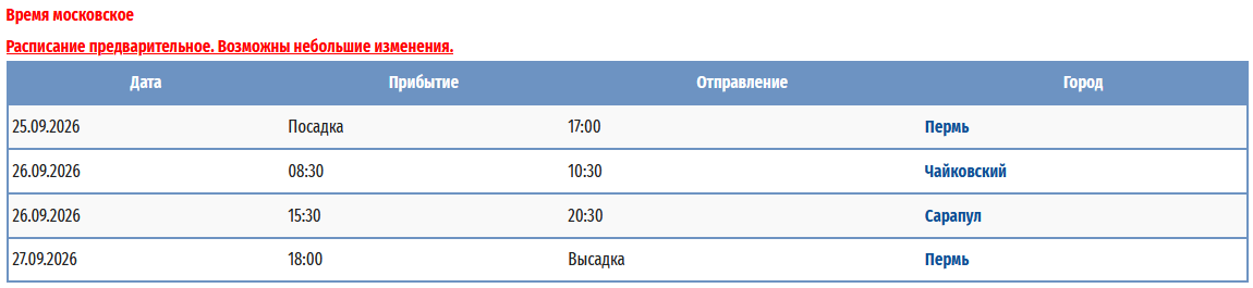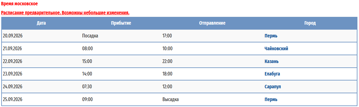 - − Пермь – Казань – Пермь с 20 сентября 2026 по 25 сентября 2026 — 6 дней
